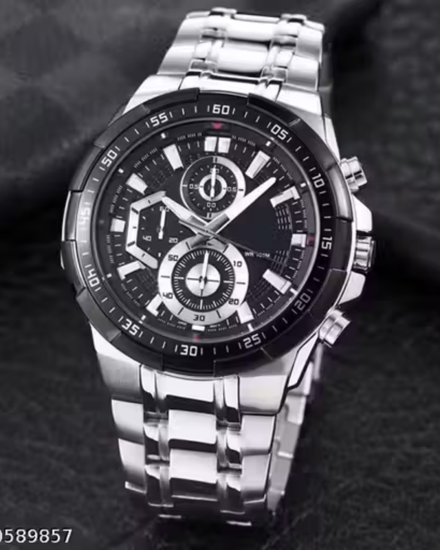 Sporty chronograph-style dial, durable silver metal strap, bold and modern design, comfortable daily wear, premium finish, multi-function look, suitable for casual and formal outfits, ideal gifting option.