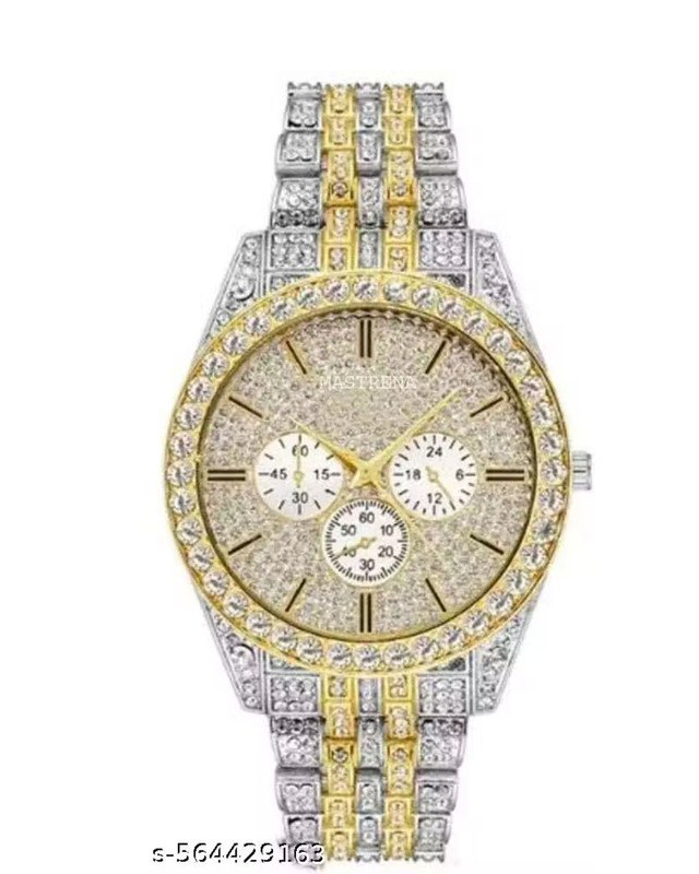 Luxury gold and silver finish, crystal-studded case and strap, stylish multi-dial display, durable metal construction, comfortable fit, premium party-wear design, elegant and fashionable appearance, suitable for daily and occasion wear.